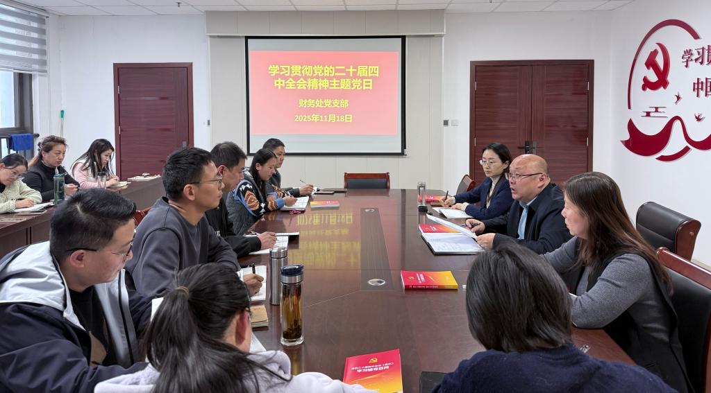 为深入学习贯彻党的二十届四中全会精神,增强全体党员干部政治自觉,凝聚工作合力,11月18日下午,财务处党支部在501会议室召开“学习贯彻党的二十届四中全会精神”主题党日活动。会议由支部书记许利军主持,财务处全体人员参会。