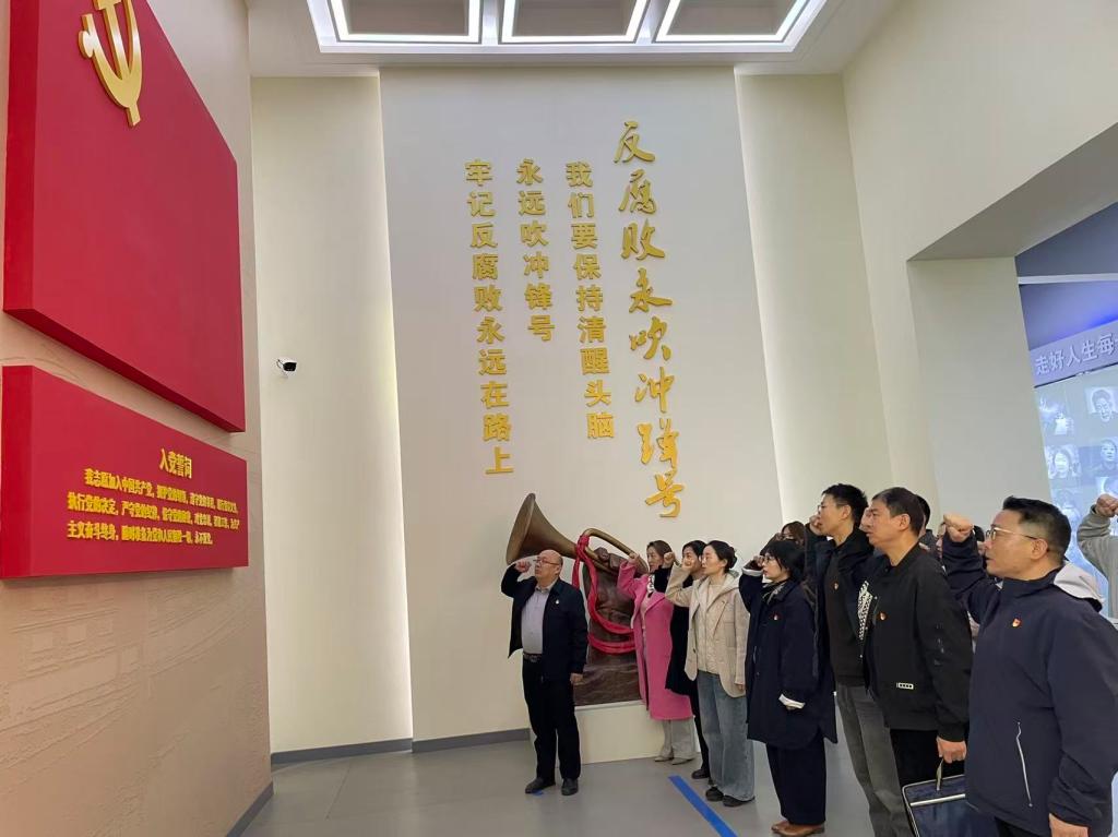 在讲解员引导下,大家依次参观了“打造铁的纪律、全面从严治党、建设清廉新乡、涵养廉洁文化”四个主题展厅。通过图文展板、实物展柜、场景再现和数字化展项,全体党员及职工深入了解了党的纪律建设历程、全面从严治党实践成果,以及新乡市廉洁文化建设成效。